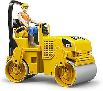 Our example of the Cat® Asphalt Drum Compactor is especially made for small construction sites and road work. Due to the sharp bend steering the Cat® Asphalt Drum Compactor has a narrow turn radius for manoeuvring well. Our toy is a true and detailed replica of the original, which is revealed in the hand brake and the bolts in the rollers. This small construction vehicle complements our construction machinery fleet perfectly. Play with it alongside our Cat® skid steer loader (art-no. 02481, 02482 USA) and the Schaeff mini excavator HR16 (art.-no. 02432) .