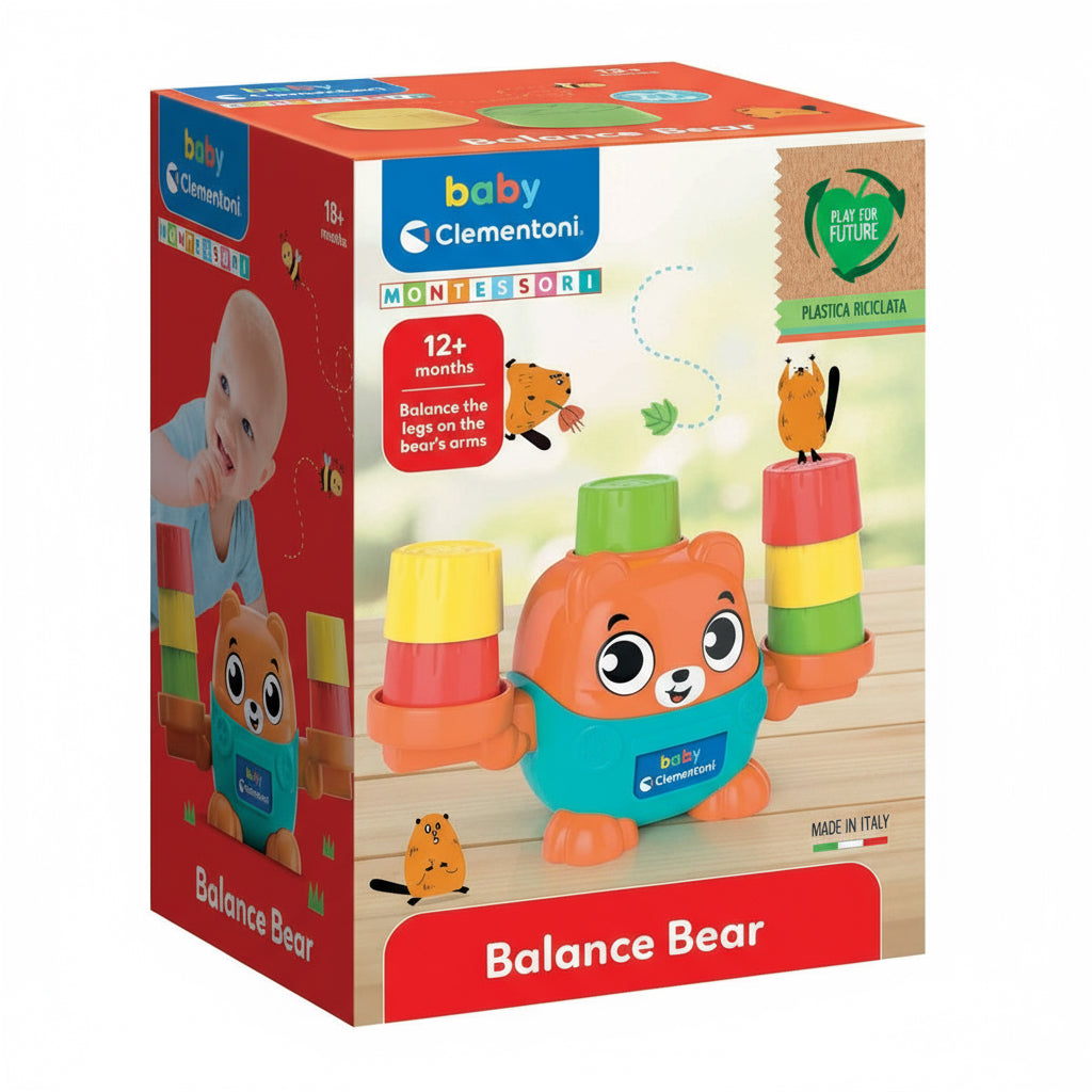 The child has fun by stacking the blocks on the bear's head. A classic "balance toy" with an empathetic, attractive design. Perfect toy for refining manual dexterity and stimulating the child's cognitive development.