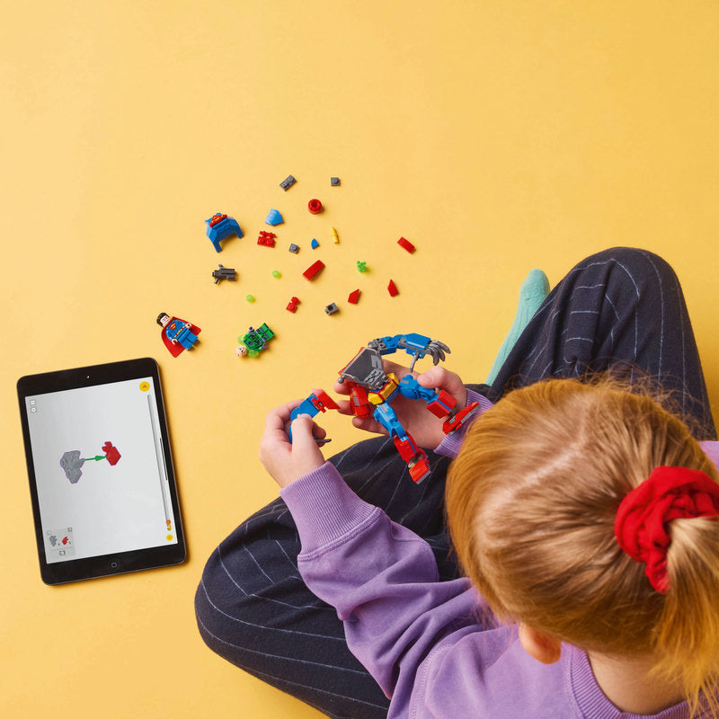 Superman™ Mech vs. Lex Luthor™ (76302) is a standout LEGO® DC mech playset created for fans of super-hero action and hands-on adventure toys aged 6 and over. This LEGO DC Superman playset comes with 2 minifigures: Superman with a fabric cape and reversible head showing alternative expressions, and Lex Luthor with a stud shooter and a Kryptonite™ crystal. The buildable mech has movable arms, legs and fingers. The torso opens to reveal a cockpit where the Superman minifigure can sit. On the mech’s back are 2 adjustable thrusters that allow the mech to ‘fly’. For added digital fun, builders can zoom in, rotate models in 3D and track their progress using the fun, intuitive LEGO Builder app. Features Super Hero™ set with Superman™ and Lex Luthor™ minifigures and a buildable mech Superman™ has alternative faces and Lex Luthor™ has a shooter and Kryptonite™ The mech has movable arms, legs and fingers and an opening cockpit 2 adjustable thrusters are attached to the mech’s back Superman™ gift for kids who like Super Heroes™, LEGO® building or mechs This set can be combined with other Super Hero™ LEGO® sets, sold separately LEGO® DC building toys deliver endless imaginative build-and-play possibilities The buildable set has 120 pieces and stands over 11 cm (4.5 in.) tall