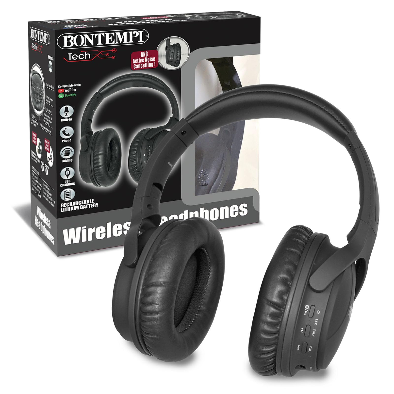 The Bontempi headphones are wireless, and they have active noice cancelling, so that noise from outside is reduced. The Headphones have a built-in microphone and you can talk on the phone with them. The Headphones have a rechargeable lithium battery, which is connected to a USB plug that is included.