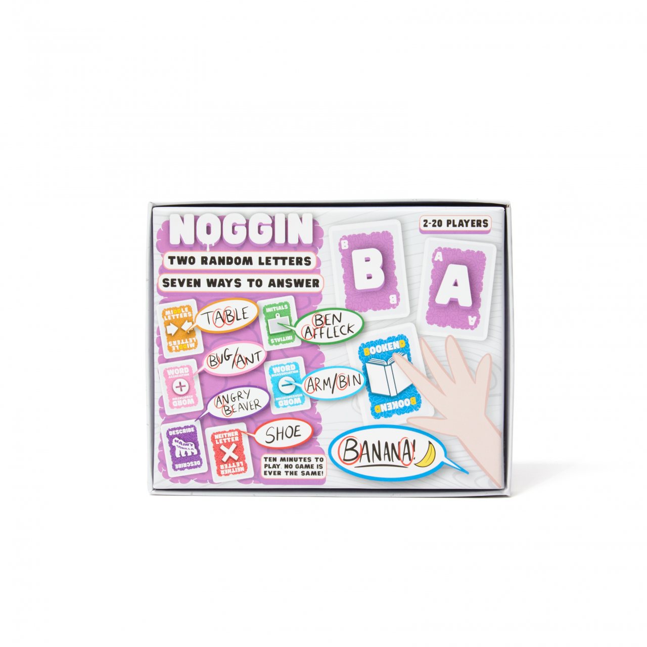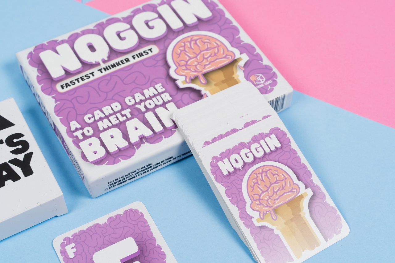 For example, M & A combined with a 'Describe' Action Card could be Amazing Magician, or with a 'Name Initial' Card, Muhammed Ali. If you get the answer right first you keep that Action Card. Collect the most Action Cards by the time all of the cards have been dealt, and you can claim to have the best Noggin in the room!