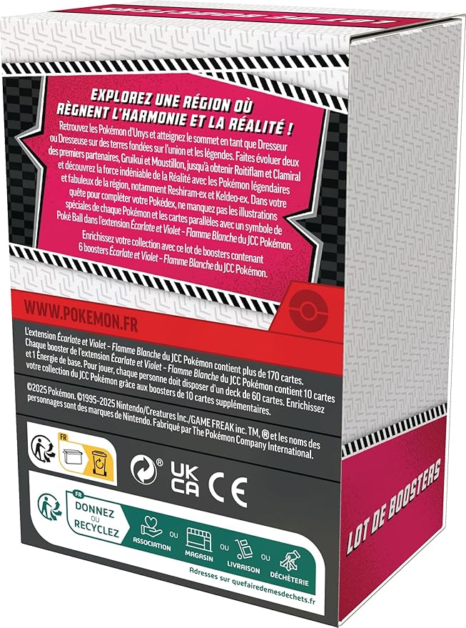 Reunite with the Pokémon of Unova and rise to the top as a Trainer in a land of unity and legends! Evolve first partners Tepig and Oshawott all the way to Emboar and Samurott, and discover the undeniable power of truth with the region’s Legendary and Mythical Pokémon, including Reshiram ex and Keldeo ex. As you fill out your Pokédex, keep an eye out for special illustrations of each Pokémon and parallel cards with Poké Ball patterns in the Pokémon TCG: Scarlet & Violet—White Flare expansion!